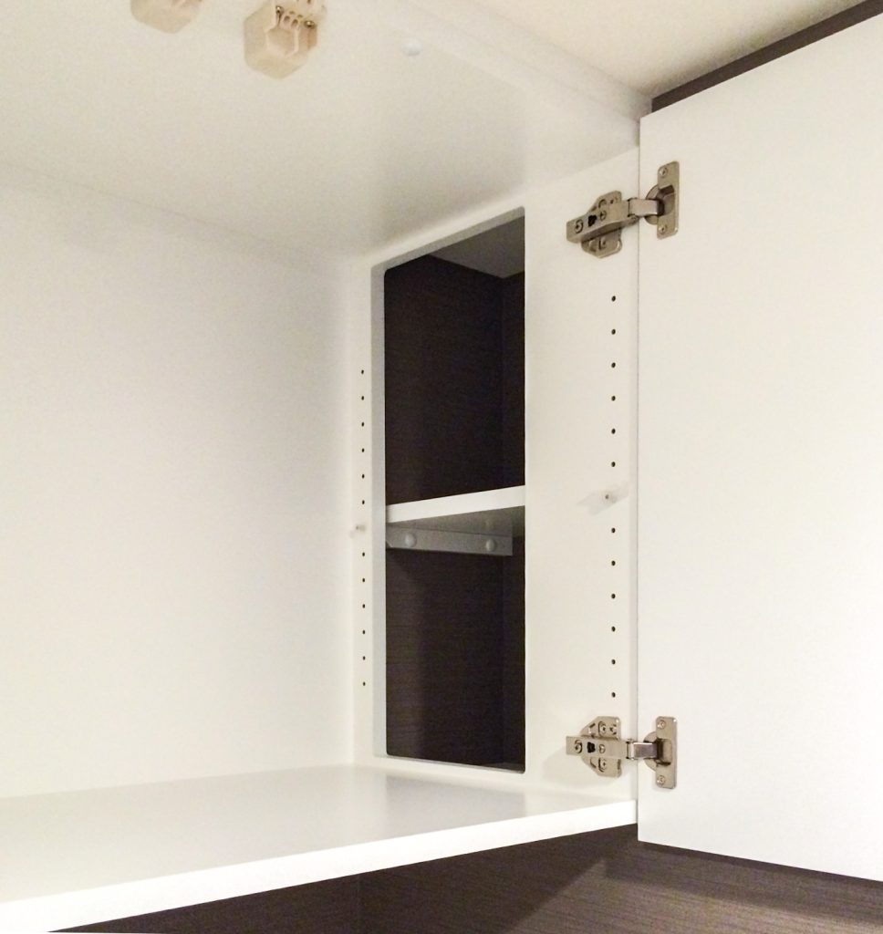 吊り戸棚の右側の大部分をくり抜いて右側のニッチも使えるようにしました。